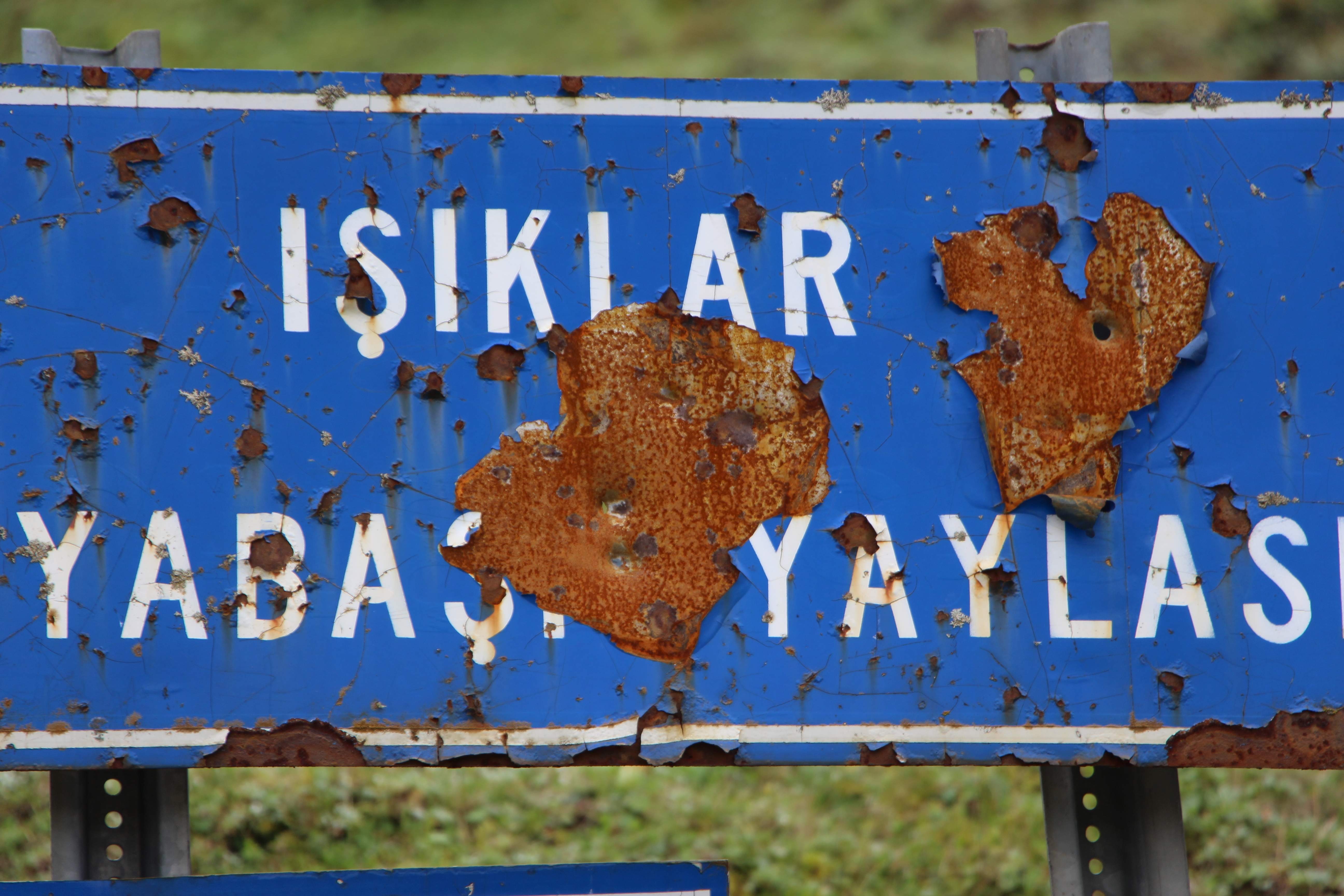 Trabzon’da bazı yaylalardaki tabelalar magandaların hedef tahtası haline geldi.