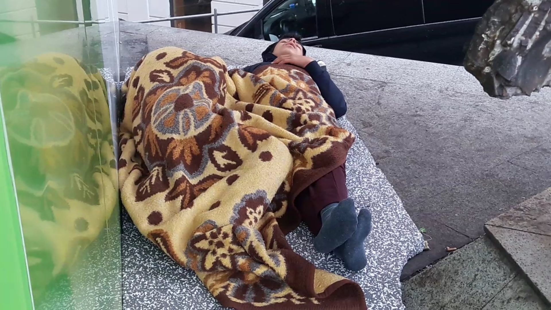 Sabah olması ile birlikte sokaktan geçenlerin şaşkın bakışları arasında uyumaya devam eden çocukların, soğuktan korunmak için üzerlerine örttükleri battaniyeye sıkıca sarıldığı görüldü. İki çocuğun bu görüntüsü yürekleri parçaladı.