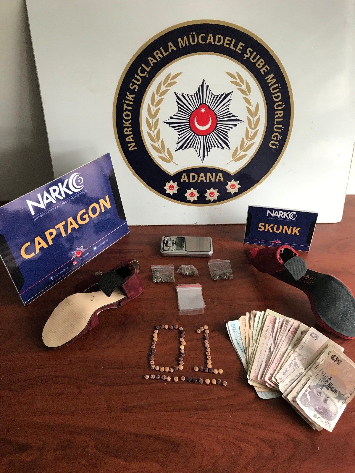 İş yerindeki aramalarda 2,8 gram skunk ile hassas terazi de bulundu. Bunun üzerine iş yerindeki Mahmut K. (49) ve ağabeyi Metin K. (55) gözaltına alındı. Ayrıca polis yaptığı incelemede bir çok kadın ayakkabısının topuğunun boşaltıldığını tespit etti. Şüpheliler emniyetteki işlemlerinin ardından sağlık kontrolü için Adana Adli Tıp Birimine getirildi.