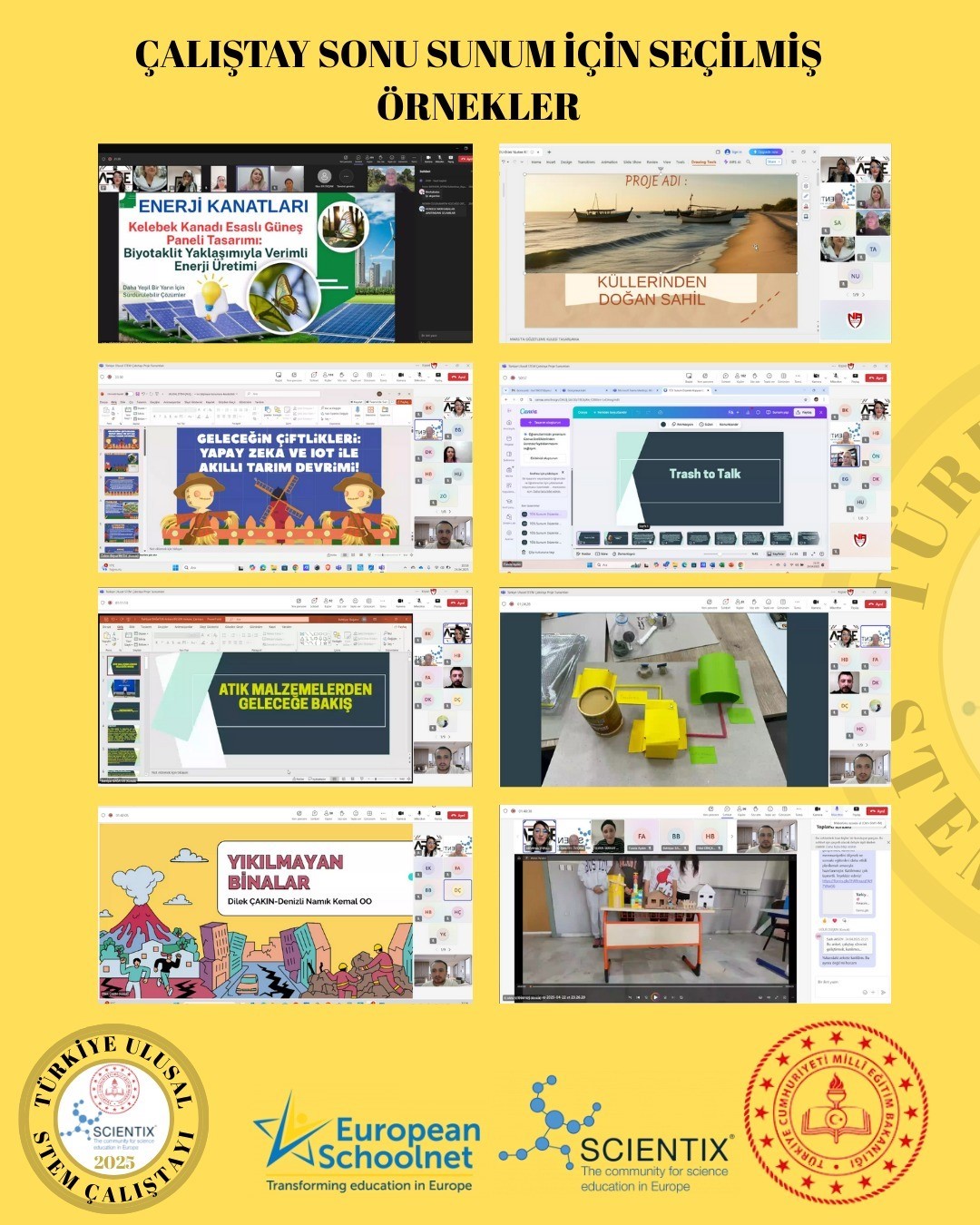 Çalıştay, 20 Nisan Pazar günü online sunumlarla başladı. Türkiye Scientix Koordinatörü Dr. Tunç Erdal Akdur’un STEM hakkında genel bilgilendirmesiyle açılış yapan etkinlikte, çok değerli akademisyenler ve Scientix elçileri bilgi ve deneyimlerini katılımcılarla paylaştı. Çalıştay süresince öğretmenler, 5E modeli çerçevesinde STEM senaryoları yazarak sınıflarında uygulamalar gerçekleştirdi ve prototipler tasarladı. Ülkenin dört bir yanında yüzlerce STEM senaryosu üretildi, saha uygulamaları yapıldı ve binlerce öğrenci STEM ile buluştu. Katılımcılar, sahada uygulama yaparak sadece teorik bilgi edinmekle kalmayıp gerçek birer üreticiye dönüşmüşürken, 5E modeline uygun şekilde yazılan tasarım odaklı senaryolar ve proje öneri formları, Milli Eğitim Bakanlığı Yenilik ve Eğitim Teknolojileri Genel Müdürlüğü tarafından kitaplaştırılacağı belirtildi.
