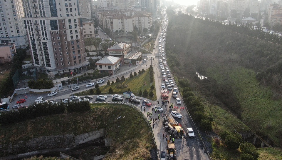 Olay, Ümraniye'de Tatlısu Mahallesi'nde TEM otoyolu yan yolunda Turgut Özal Bulvarında saat 08.00 sıralarında meydana geldi. Emin Kılıç idaresindeki 34 HJ 7192 plakalı beton yüklü kamyon aşırı yük nedeniyle virajı dönemeyerek yan yattı. Kamyonun devrilmesiyle sürücü yaralandı. Çevredeki sürücülerin ihbarı üzerine olay yerine polis, itfaiye ve acil servis ekipleri sevk edildi.