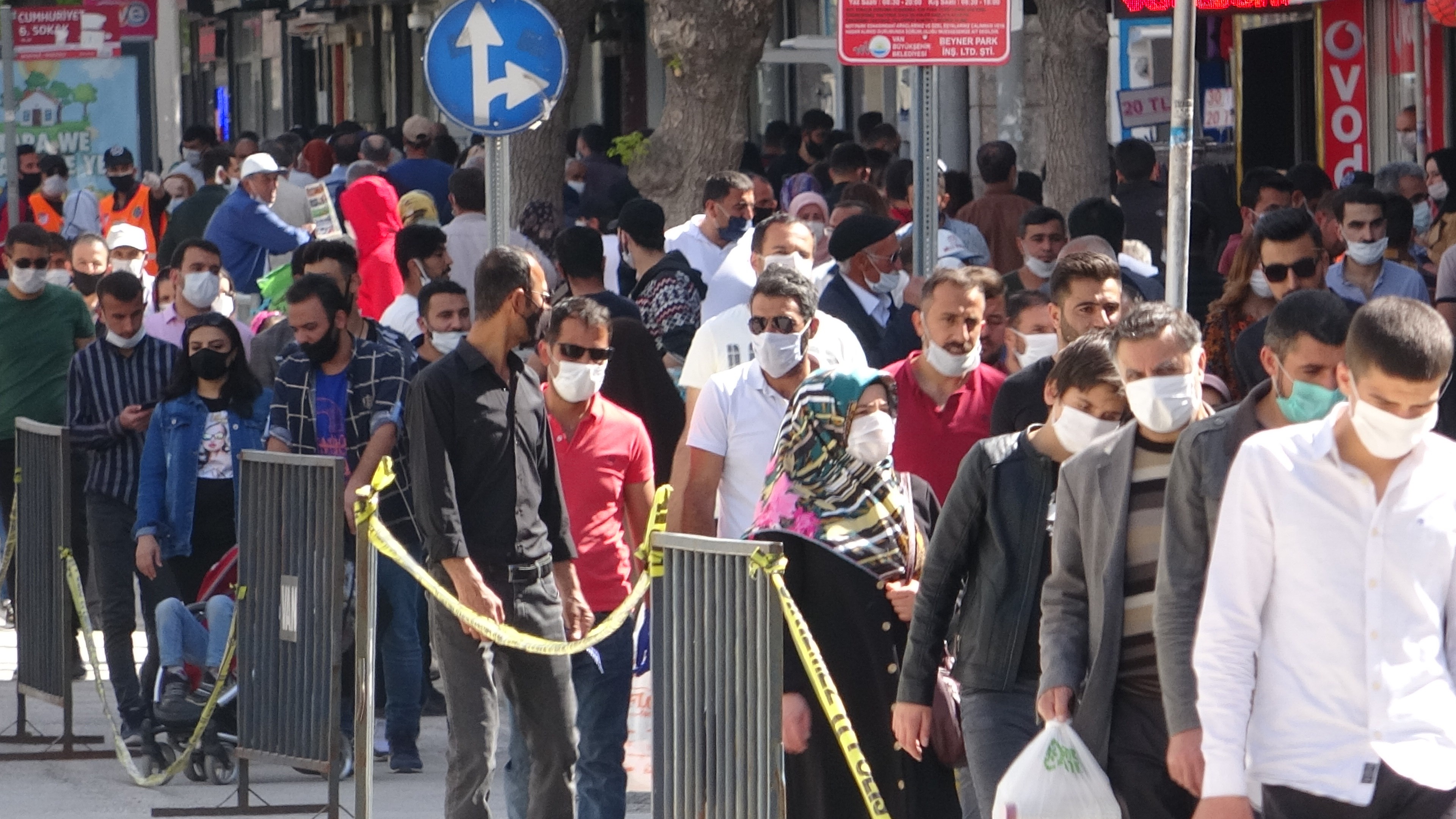 İçişleri Bakanlığı tarafından yeni tip korona virüs tedbirleri kapsamında 4 gün süreyle getirilen sokağa çıkma kısıtlamasının sona ermesi ve maske kullanımının zorunlu hale getirildiği Van’da kentin en işlek caddelerinde sosyal mesafe kuralları hiçe sayıldı.