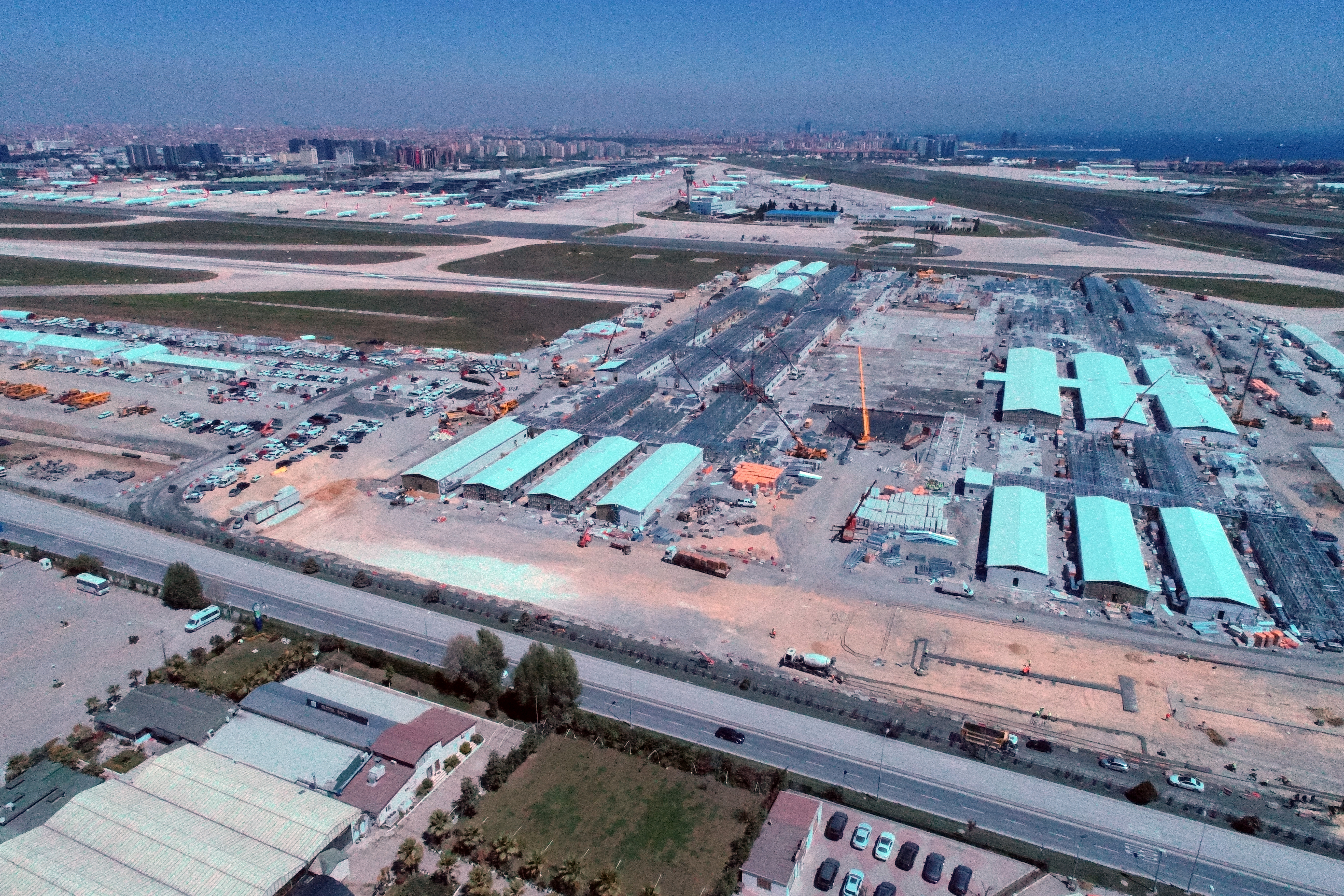 Cumhurbaşkanı Recep Tayyip Erdoğan'ın korona virüs (Covid-19) salgınıyla mücadele kapsamında Sancaktepe ve Yeşilköy Havalimanı'ndaki hastanenin çatı ve duvarları ortaya çıktı. Biner yatak kapasiteli iki hastanenin 45 günde yapılarak pandemiyle mücadelede hizmete gireceğini açıklamasının ardından yaklaşık 20 gün önce yapımına başlanan hastanelerin inşası son sürat devam ediyor. Hastanenin hedeflenen sürede tamamlanması için ekipler üç vardiye şeklinde çalışıyor.